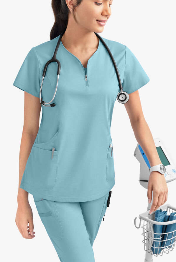 Ua Butter Soft Stretch Curved Neck Zipper Scrub Top Fashion Scrubs
